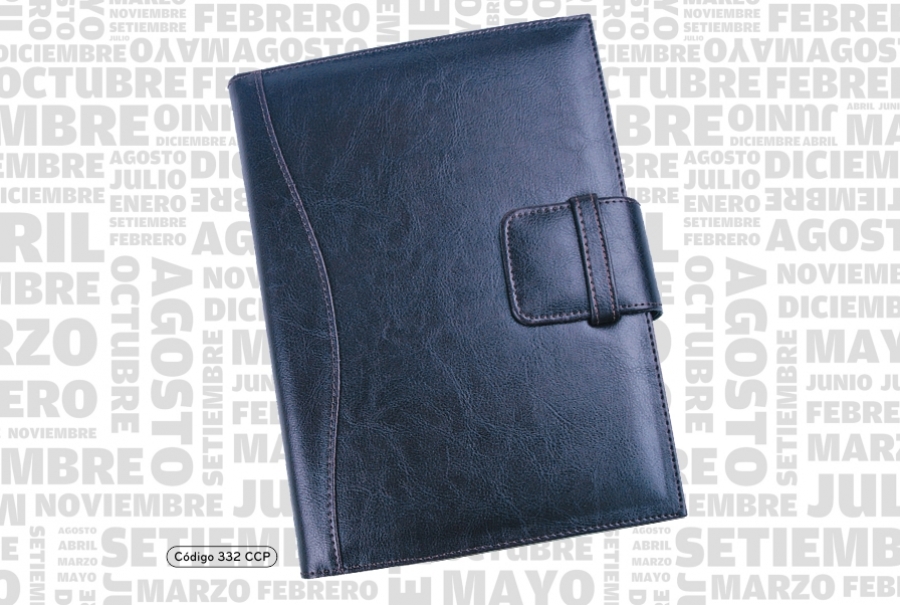 Tapa con carpeta, presilla, bolsillo, detalle en lomo combinado.